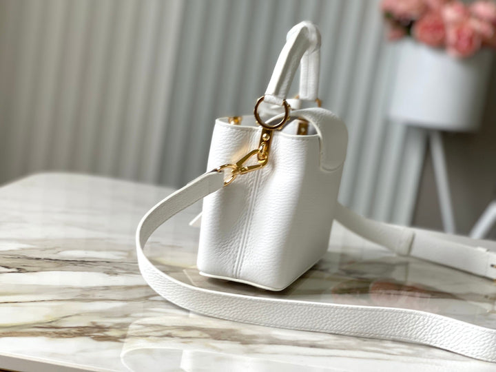 CAPUCINES MINI 21 IN WHITE TAURILLON GOLD HARDWARE